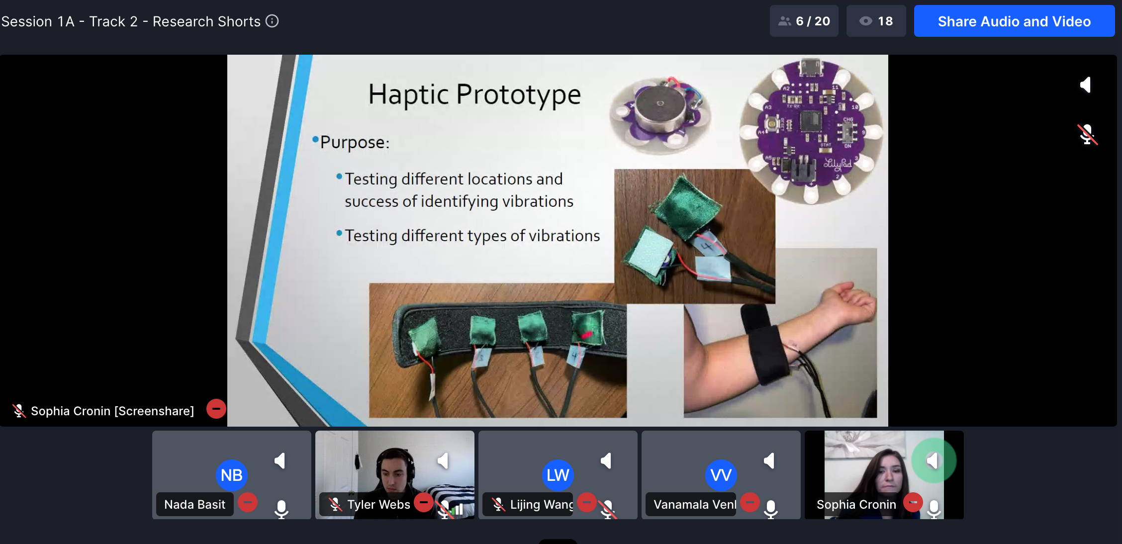 Sophia Cronin and Tyler Webster also presented their work on wearable haptic and visual feedback systems for physical therapy rehabilitation at the ACM Capital Region Celebration of Women in Computing (CAPWIC). Their abstract and presentation are available.